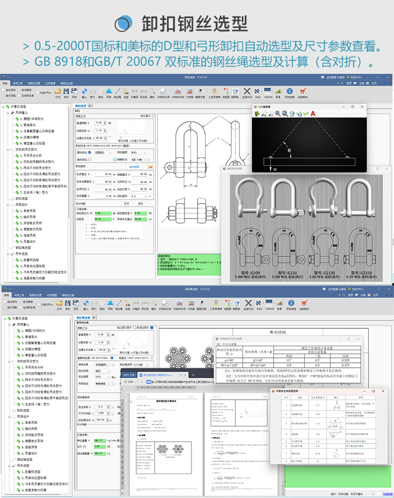 9. 统一钢丝绳选型计算书的单位为吨;